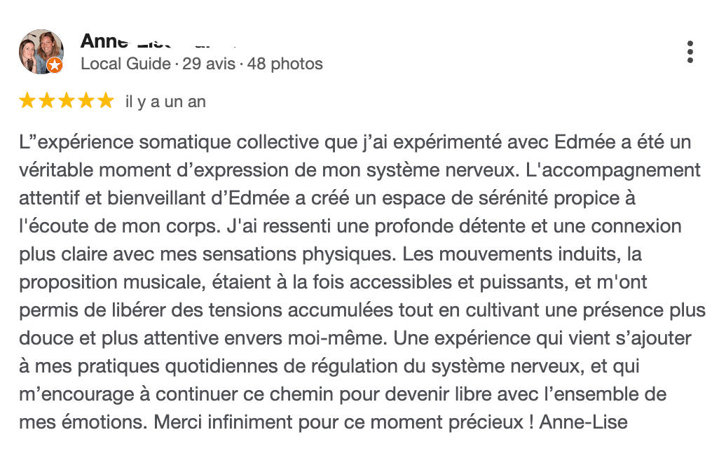 J'aide les femmes sensibles et spirituelles à se libérer du stress et de l'anxiété en se reconnectant à l'intelligence du corps.